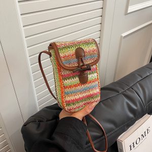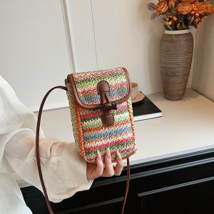 Handmade straw woven bag for women 2024 new trendy fashion simple niche crossbody bag summer versatile mobile phone bag