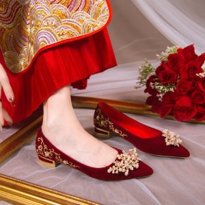 Wedding shoes spring women’s red Xiuhe suit bridal shoes new niche high-end toasting thick heels flat shoes Popular elements: buckle Toe shape: pointed Upper material: suede Style: leisure Applicable gender: Female Heel height: low heel (1-3CM) Pattern: solid color Suitable season: spring