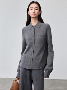 Simple and lazy style knitted cardigan solid color base sweater women’s wool medium long loose slimming top knitted sweater