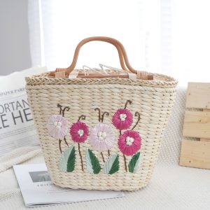 Cornflake woven bag, hand-embroidered bag, personalized original straw bag, limited edition red ladies handbag