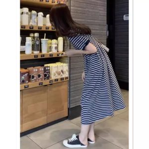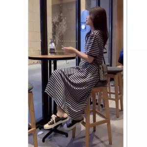 Summer new short-sleeved striped dress women’s oversize T-shirt slimming versatile long skirt