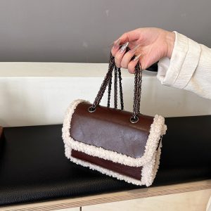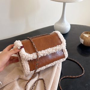 Versatile furry small bag for women 2024 new Maillard retro small square bag texture ladies chain shoulder crossbody